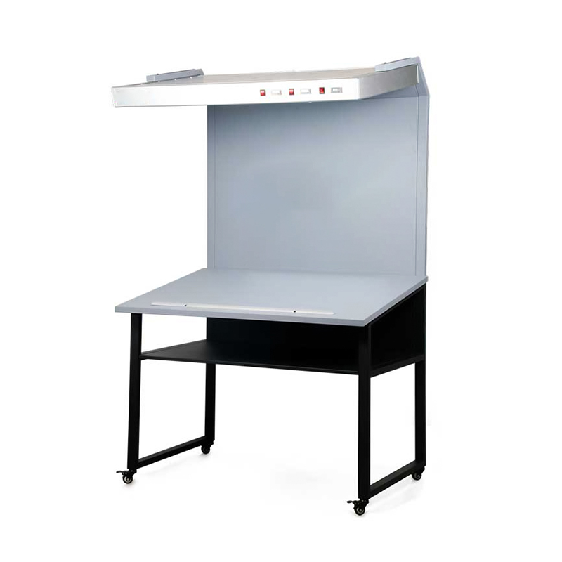 A款式基于原CC120看樣臺(tái)的基礎(chǔ)款,上面是光源和展示臺(tái),下面是儲(chǔ)物格,方便放置待測樣品。 |
